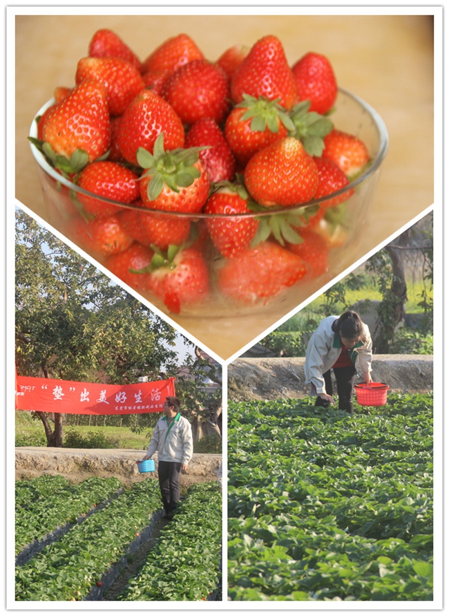 在道窖鎮(zhèn)不遠的地方,就有一處草莓園,位置偏,但是小伙子學(xué)會用網(wǎng)絡(luò)團購的營銷思維,把生意還做的風(fēng)生水起的,不盡心生敬意。草莓園因前幾天下雨,故而溝壑積水,大家在腳上套了袋子,提小筐一窩蜂似的涌入草莓地里,第一件事,哈哈,我趕快偷吃了幾顆,酸!甜!嗯......那汁在我的口中融化、擴散,就好似一杯百年干紅,潤入我的味蕾,磬人心脾!