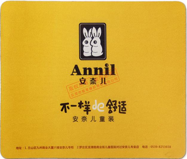 深圳市安奈兒股份有限公司(以下簡稱安奈兒),安奈兒是一家經(jīng)營中高端童裝的企業(yè)。并在天貓/京東/拍拍等商城開設旗艦店。安奈兒的廣告鼠標墊是在能者定做的,安奈兒公司在電商行業(yè)發(fā)展成熟,很認可鼠標墊的廣告形式。